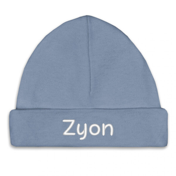 Babymutsje Grey Blue met Naam Geborduurd – 100% Katoen, Maat 50/56