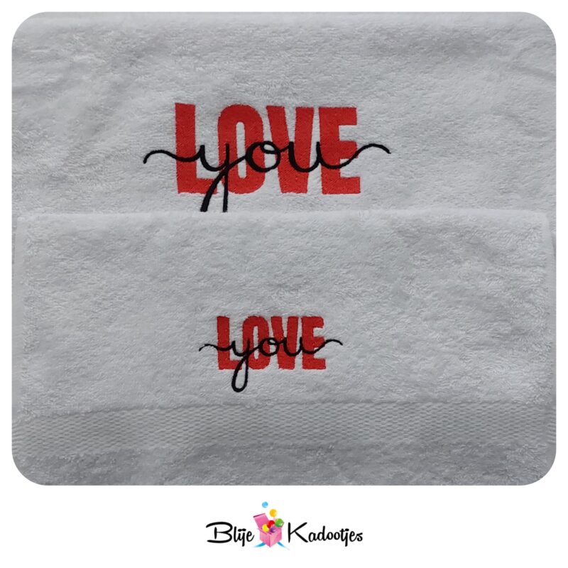 Super leuke handdoek met de tekst Love You er op geborduurd. Leuk om je aller liefste mee te verassen.