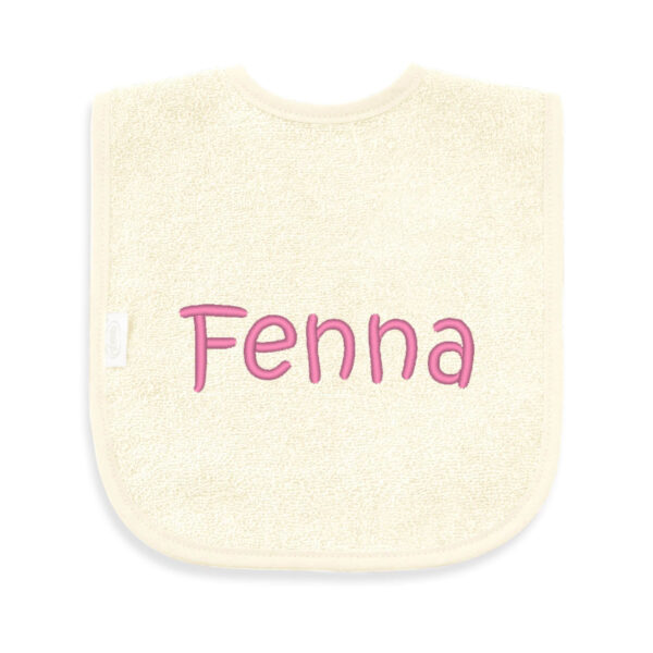 Slabbetje Ecru met Naam Geborduurd – 100% Katoen, 25×40 cm, Klittebandsluiting