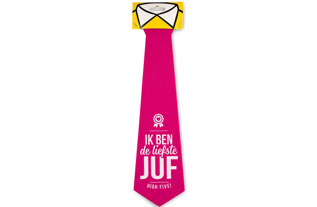 Deze stropdas is gemaakt van vilt met een elastiek zodat het om de nek gedragen kan worden.